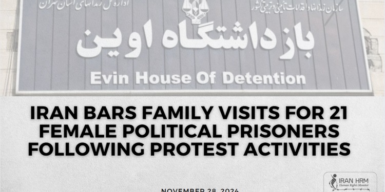 Les autorités iraniennes ont interdit pendant trois semaines les visites familiales à 21 prisonnières politiques détenues à la prison d’Evine à Téhéran. Cette décision, annoncée le 26 novembre 2024 par le directeur de la prison, Hedayat Farzadi, fait suite à des accusations de « perturbation de l’ordre carcéral ». Les accusations découlent de la participation des prisonniers à une cérémonie marquant le soulèvement de novembre 2019 et de leur opposition aux exécutions, des actions jugées inacceptables par le comité disciplinaire de la prison.