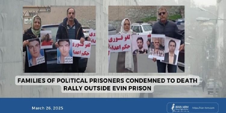 Le premier mardi du nouvel an iranien, les familles des prisonniers politiques Vahid Bani Amrian et Pouya Ghobadi — tous deux condamnés à mort — ont tenu une manifestation pacifique devant la prison d’Evin pour demander la révocation des peines de mort prononcées contre leurs proches.