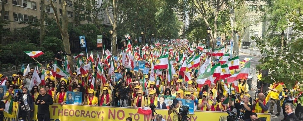 Dans un message vidéo diffusé lors du rassemblement, Maryam Radjavi, présidente élue du CNRI, a salué la foule, la qualifiant de « véritable porte-parole du peuple iranien devant les Nations Unies ». Elle a déclaré que les manifestations à New York faisaient écho aux mouvements de protestations à Téhéran, Machhad, Ahvaz, Tabriz, Zahedan et dans tout l’Iran, y compris dans les prisons.