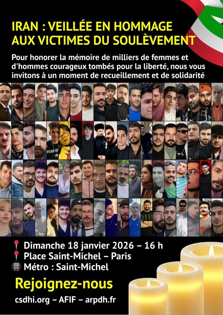 Nous appelons les citoyens, les défenseurs des droits humains et les forces démocratiques à se rassembler à Paris pour soutenir le soulèvement national du peuple iranien, qui rejette toute forme de dictature.