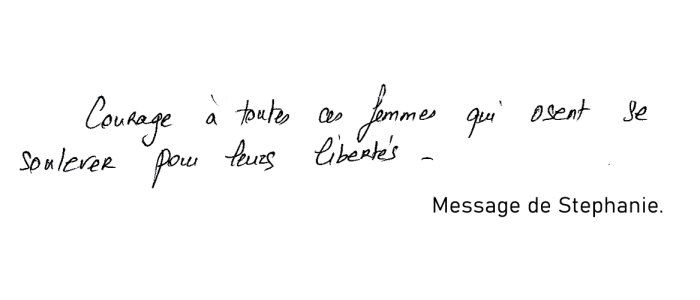 Bon courage et vive les femmes et la liberté.