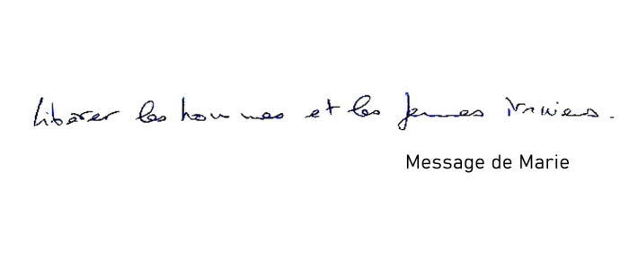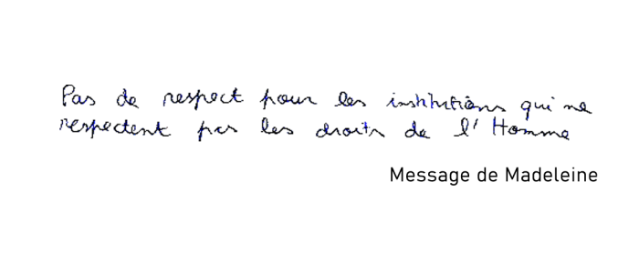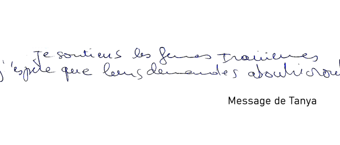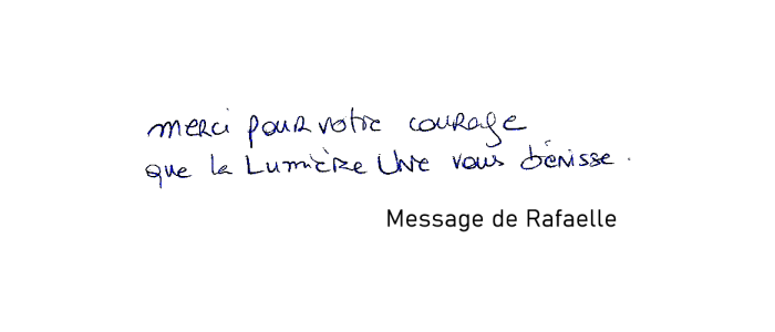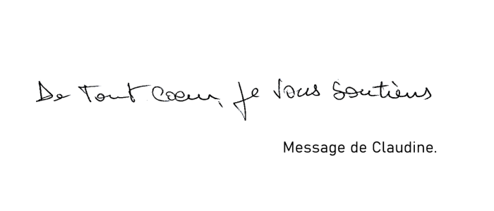 "Je soutiens de tout mon coeur toutes les personnes qui se donnent corps et âmes pour que cette situation change. En union de prière."