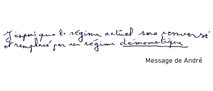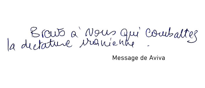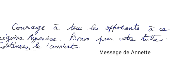 "Courage à tous les opposants à ce régime tyrannique. Bravo pour votre lutte, continuez le combat."