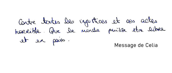 "Contre toutes les injustices et ces actes horribles. Que le monde puisse être libre et en paix."