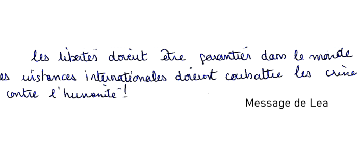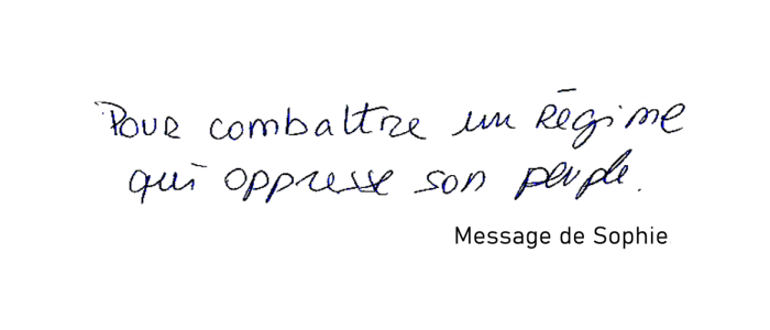 "Je soutiens la résistance contre ces crimes, pour la liberté et les droits de l'homme"