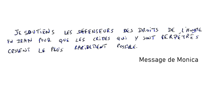 "Je soutiens les défenseurs des droits de l'homme en Iran pour que les crimes qui y sont perpétrés cessent le plus rapidement possible."