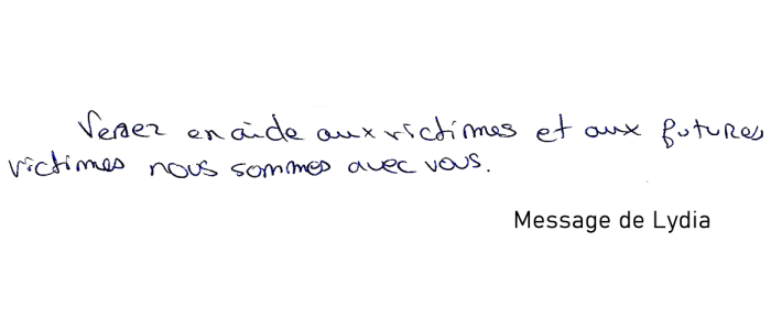"Venez en aide aux victimes et aux futures victimes, nous sommes avec vous."