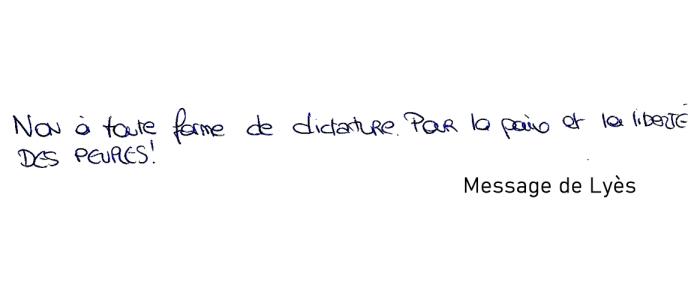 "Non à toute forme de dictature. Pour la paix et la liberté des peuples !"