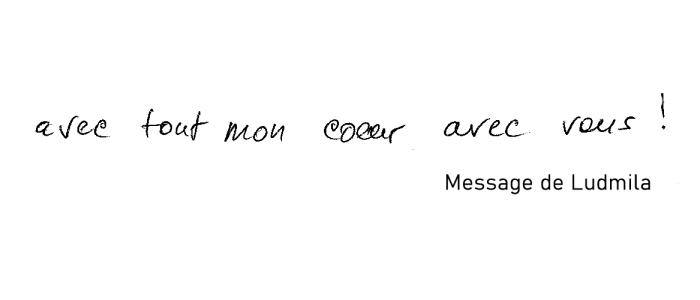 "Avec tout mon coeur avec vous !"