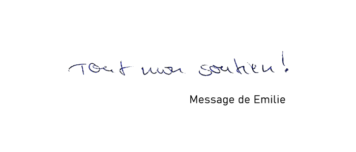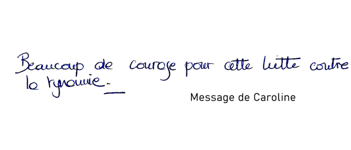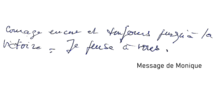 Bon courage. Nous pensons beaucoup à vous et à votre détermination.