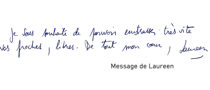 "Je vous souhaite de pouvoir embrasser très vite vos proches, libres. De tout mon cœur"