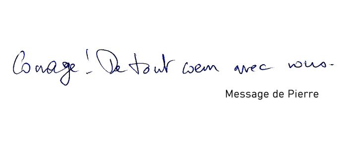 Courage ! Nous sommes avec vous.